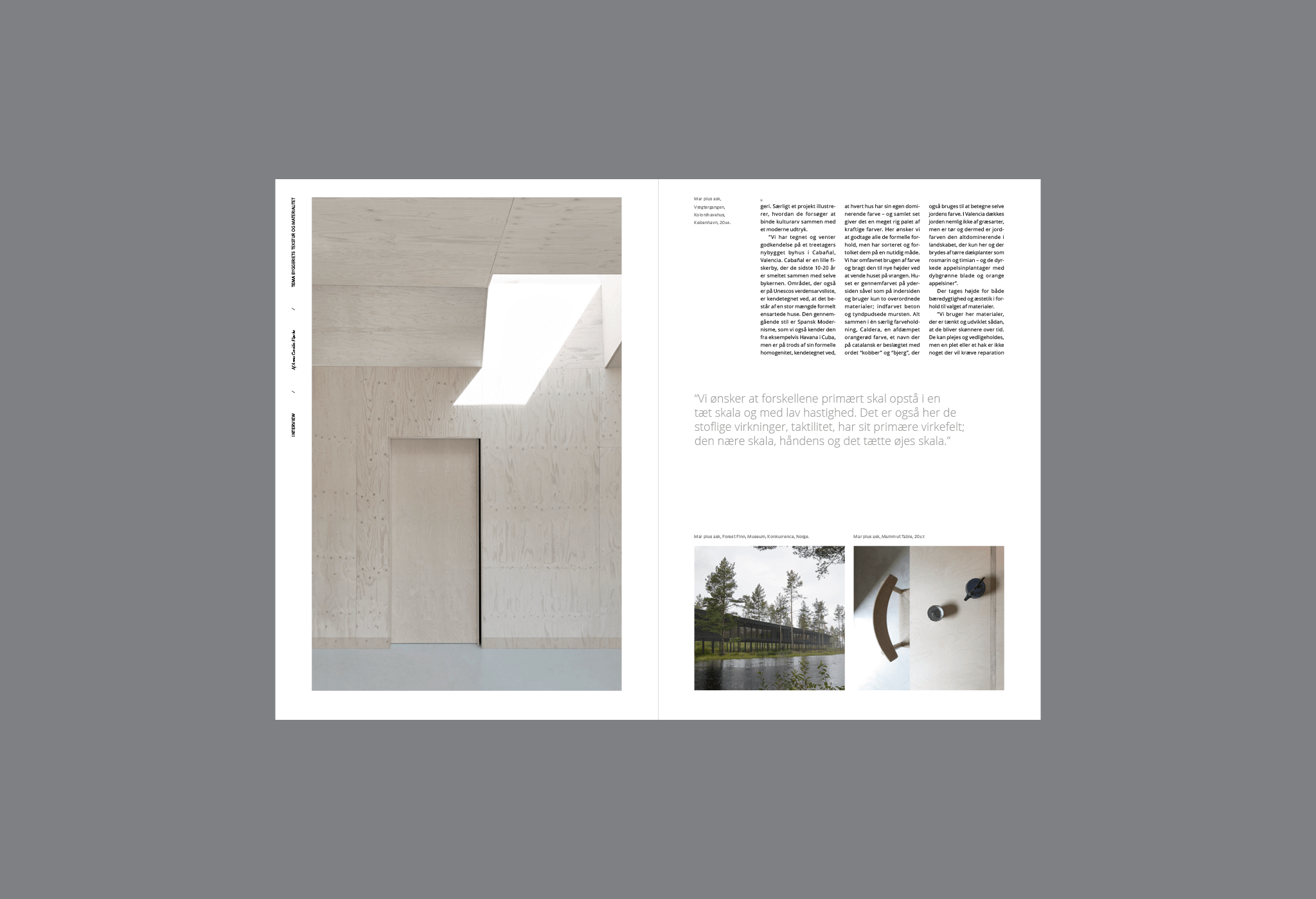 Arkitektur/design har fokus på tidens tendenser og begivenheder i dansk arkitektur, kunsthåndværk og design og blev lanceret i december 2018. Magasinet udkommer fire gange årligt med 100 sider, og består af artikler, anmeldelser, reportager, essays, portrætter. Det har været en spændende udfordring at udvikle magasinet arkitektur/design fra scratch i samarbejde med designerne Sofie Engel og Cecilia Brøgger. Jeg har efterhånden arbejdet sammen med teamet i en del år og gav dem helt frie tøjler til at udvikle et nyt visuelt koncept. / Chefredaktør Tina Kristensen.