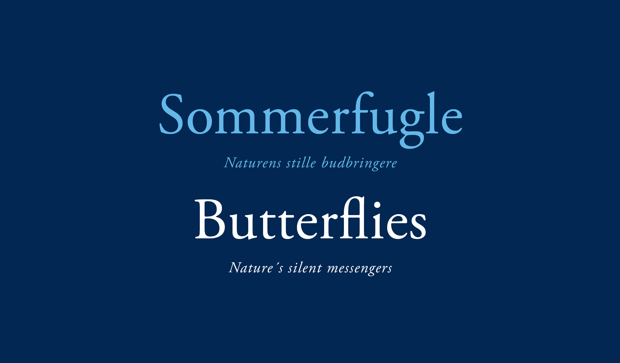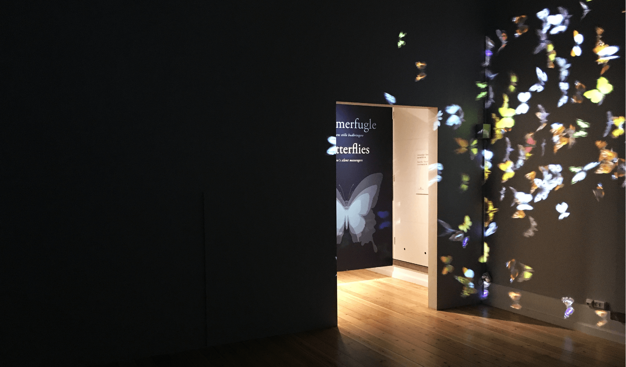 Geologisk Museum sætter fokus på sommerfugle i den permanente udstilling ‘Sommerfugle – Naturens stille budbringere'. Her kan man få indblik i vores store samling af sommerfugle og fordybe sig i deres forunderlige liv, og samtidig få indsigt i hvordan klimaforandringer påvirker bestanden. I samarbejde med udstillingsarkitekt Anne Schnettler og udstillingsteamet på Statens Naturhistoriske Museum, har designerne Sofie Engel og Cecilia Brøgger skabt et florlet visuelt udtryk, der i alt sin enkelthed skaber kontrast til inventar og vores sommerfuglesamling. Designkonceptet er let at afkode på tværs af museets mange platforme som wayfinding, outdoor, annoncer, online og ikke mindst på selve udstillingen i form af informations-podier, folier, iIllustrationer og boards. / Birgitte Rubæk, Exhibitions and Interpretation Manager, Statens Naturhistoriske Museum